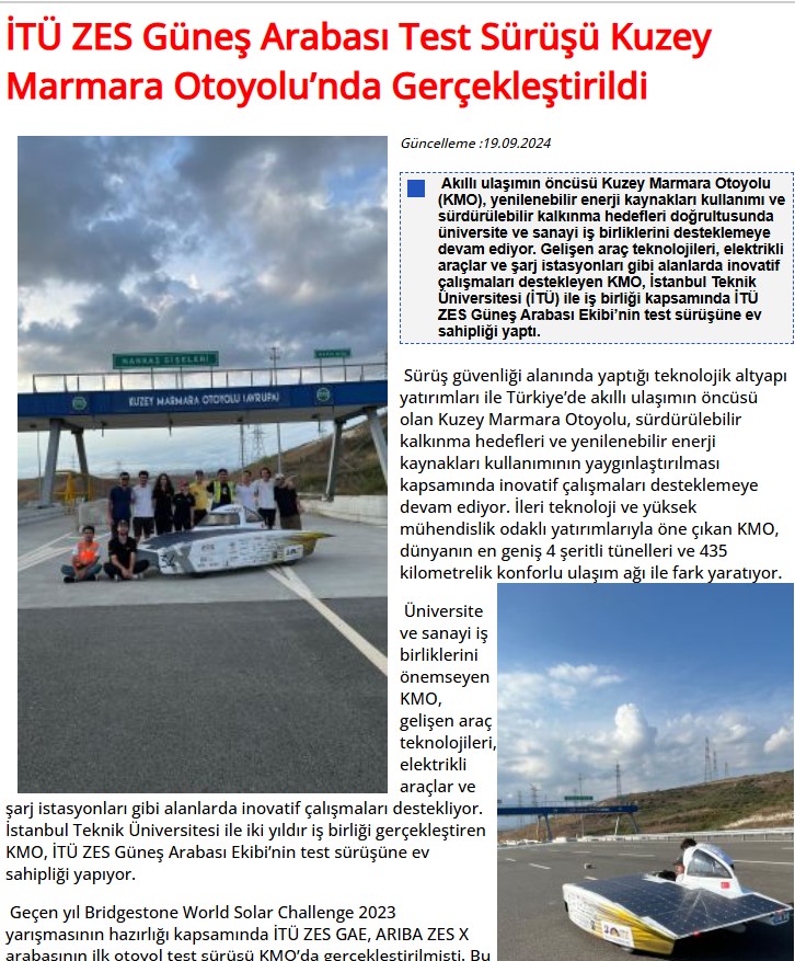 İTÜ ZES Güneş Arabası Test Sürüşü Kuzey Marmara Otoyolu'nda Gerçekleştirildi
