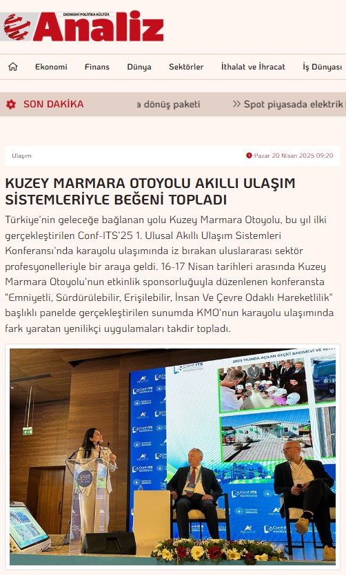 Kuzey Marmara Otoyolu Akıllı Ulaşım Sistemleriyle Beğeni Topladı